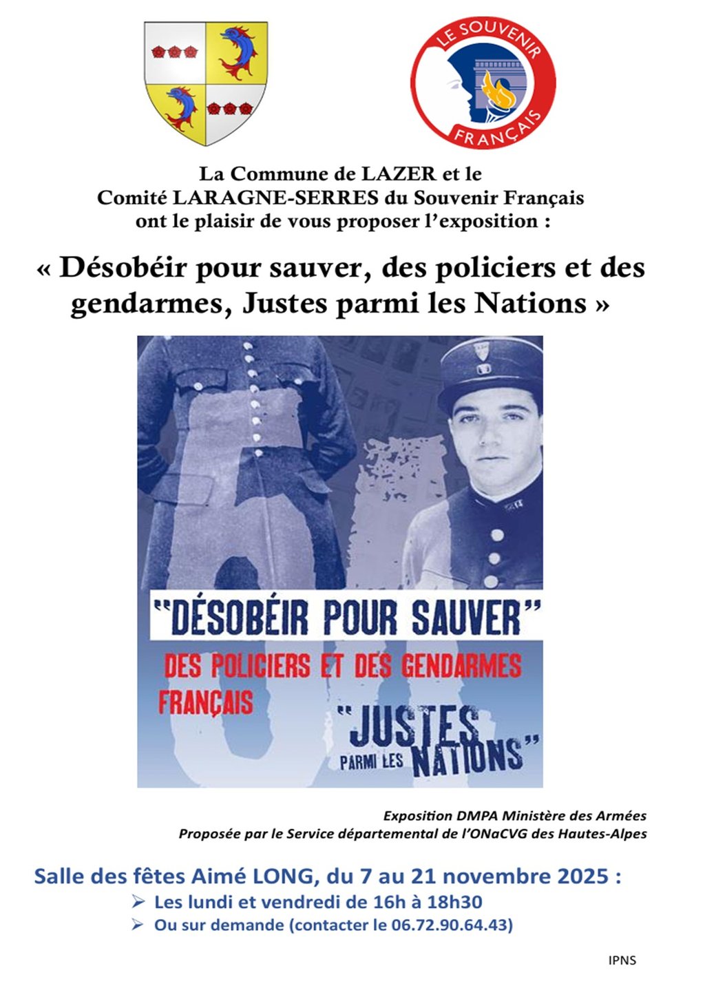 EXPOSITION « Désobéir pour sauver, des policiers et des gendarmes, Justes parmi les Nations »