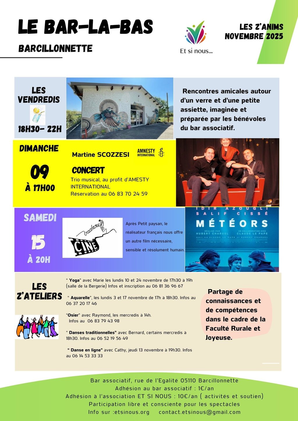 Tous les rdv de novembre au Bar associatif en un seul coup d'oeil !