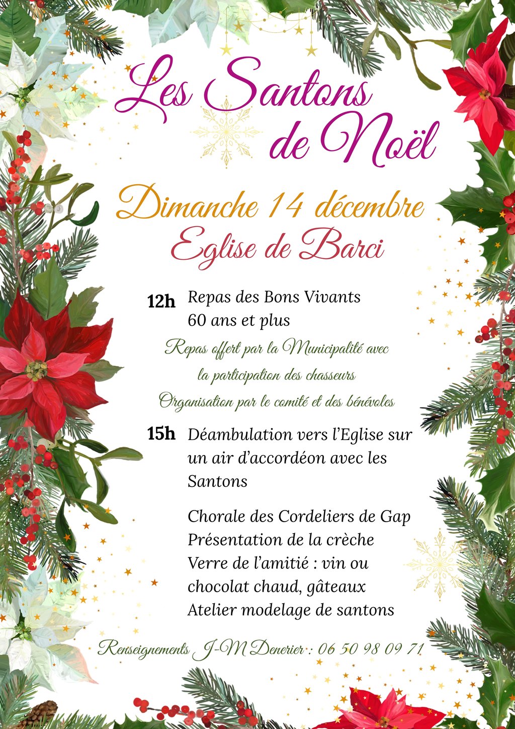 En musique avec la Chorale des Cordeliers de Gap, et aussi un petit air d'accordéon, pour faire vivre les santons et la magie de Noël avec en prime des gourmandises, un atelier modelage... voir le programme sur l'affiche